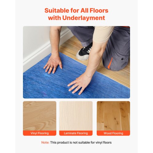 VEVOR Trittschalldämmung, 18,8 m²/Rolle, 3 mm dicke Dämmungunterlage mit angebrachter Dampfsperre, Faser + PE-Folie, Schalldämmung & Geräuschreduzierung, ideal für Vinyl, Laminat, Holz, Blau