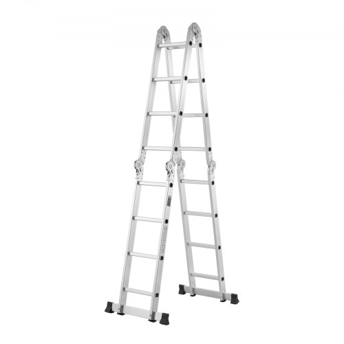 VEVOR Mehrzweckleiter, 7-in-1-Multifunktionsleiter, A-Rahmen mit 4 Stufen und Gerüstbrett, Teleskopleiter, Leitergerüst 4650 mm, strapazierfähig, 150 kg Tragkraft, für den Außenbereich