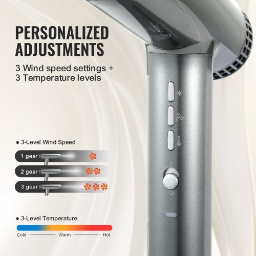 VEVOR Haartrockner 1500-1800 W Haarföhn 105.000U/min Föhn Trockner Haare 20,0 m/s Windgeschwindigkeit Dryer 75,0 dB Geräuschpegel Haarfön mit 4 Wärmeeinstellungen und 3 Windgeschwindigkeiten