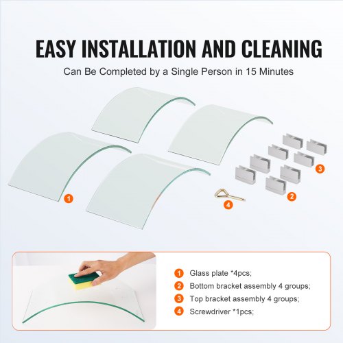 VEVOR Glas-Windschutz für rechteckigen Feuerstellentisch 924 x 417 x 191 mm, 8 mm dicke und stabile gehärtete Glasscheibe mit harter Aluminium-Eckhalterung und Gummifüßen, einfach zu montieren