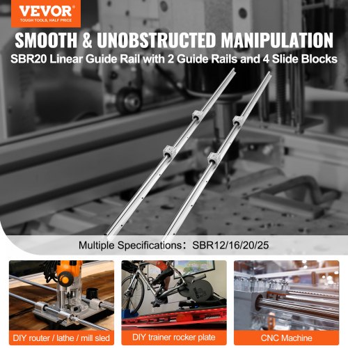 VEVOR Linearführung Linearschiene 2 Stk. SBR20-1500mm Kohlenstoffstahl Aluminium Führungsschiene mit 4 Stk. SBR20UU-Gleitblöcke Linearlager Lagerblock CNC Teile für 3D Drucker Fräs-/Drehmaschine