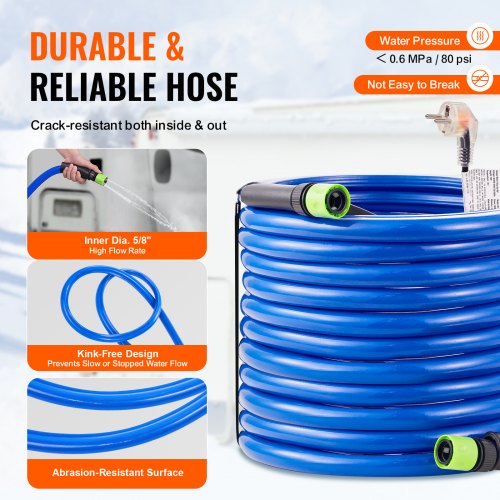 VEVOR 25 Fuß beheizter Wasserschlauch für Wohnmobil, beheizter Trinkwasserschlauch mit gewellter Abdeckung, Frostschutz bis -45 °F, automatisch selbstregulierend, 5/8 Zoll Innendurchmesser