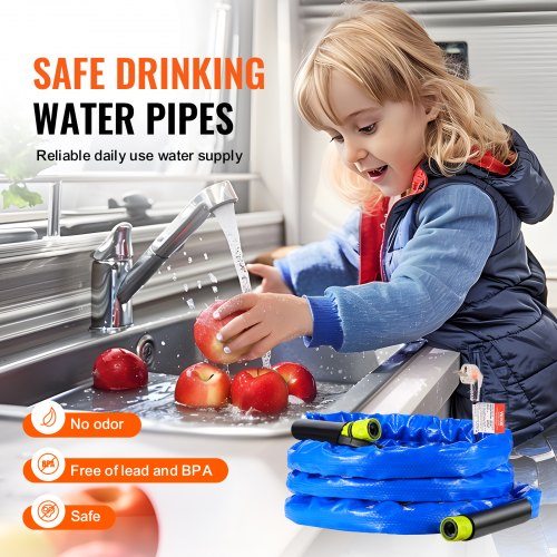 VEVOR 50ft beheizter Wasserschlauch für Wohnmobil, beheizter Trinkwasserschlauch mit Frostschutz bis -45°F, automatisch selbstregulierend, 5/8" ID mit Schnellanschluss-Set, blei- und BPA-frei