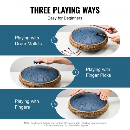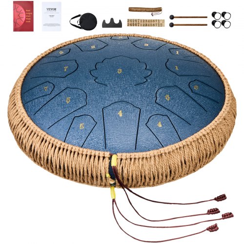 VEVOR Zungentrommel 356 mm, Steel Tongue Drum 15 Noten, Regentrommel, C-Dur-Tonart, Regenglockenspiel mit 2 Schlägeln & Tragetasche, Handpan-Trommel, Schlaginstrument für Musikunterricht & Yoga, Blau