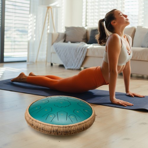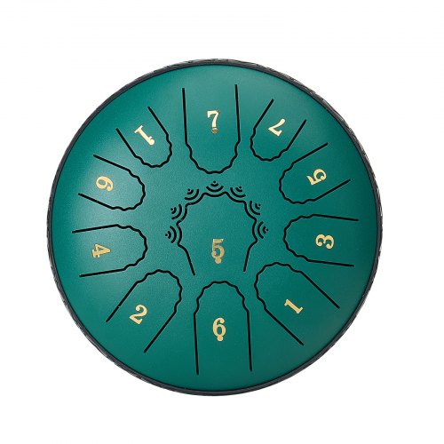 VEVOR Zungentrommel, 165 mm, 11 Tönen Regentrommel, D-Dur Musiktrommeln mit Notenbuch & Schlägeln, Steel Tongue Drum, Steel Pan, für Meditation Yoga Anfänger Musikunterricht, Grün