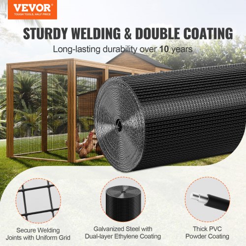 VEVOR Volierendraht 91 x 3048 cm, Gartenzaun, 1,06 mm Maschendrahtzaunrolle, Vinylbeschichtetes Drahtzaun für Hühnerstallbarrieren, Kaninchen- und Schlangenzäune, Geflügelgehege