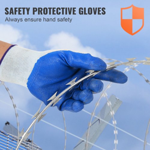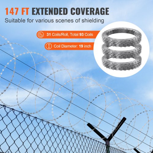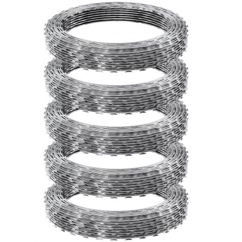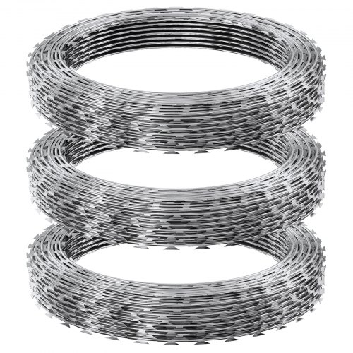 VEVOR Natodraht 45 m (3 Rollen x 15 m) Stacheldraht Spirale Klingendraht Sperrdraht Stacheldrahtzaun 0,51 mm scharfe Klingen und 4 mm dicke Kerndrähte Maschendraht für außergewöhnlichen Spiralschutz