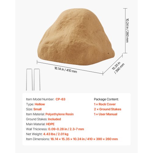 VEVOR Abdeckfelsen, Kunstabdeckung für Außenbereich, realistische Steinoptik, Gartenfelsen, Kunstfelsen aus Polyresin für Landschaftsgestaltung, Gartendekor, Sandfarbe, 410 x 390 x 260 mm