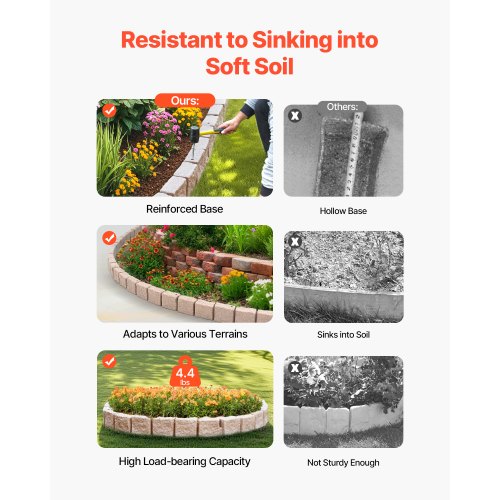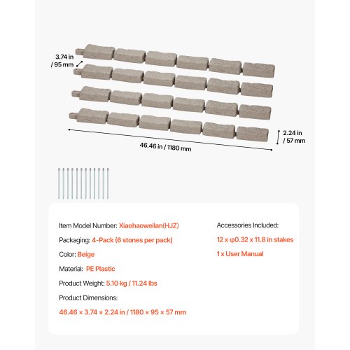 VEVOR 4er-Set Rasenkante in Steinoptik, 1180x95x57 mm realistische Beeteinfassung, flexible Gartenbegrenzung in Ziegelgröße mit Verankerungsspitzen, Beetumrandung für Einfahrten, Gehwege, Beige