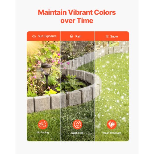 VEVOR Rasenkante in Steinoptik, 1180x95x57 mm realistische Rasenkante, flexible Beeteinfassung in Ziegelgröße mit Verankerungsspitzen, Beetumrandung für Einfahrten, Gehwege, 4er-Set, Grau