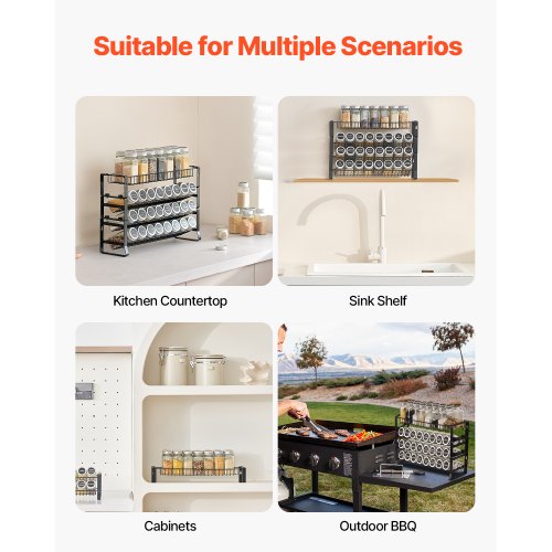 VEVOR abnehmbares Gewürzregal 4-stöckiger Gewürzhalter Organizer, stapelbarer Gewürzständer (401 x 116 x 271 mm), Küchenaufbewahrung für Arbeitsplatte, Küchen-Vorratsschrank, Speisekammer Schwarz
