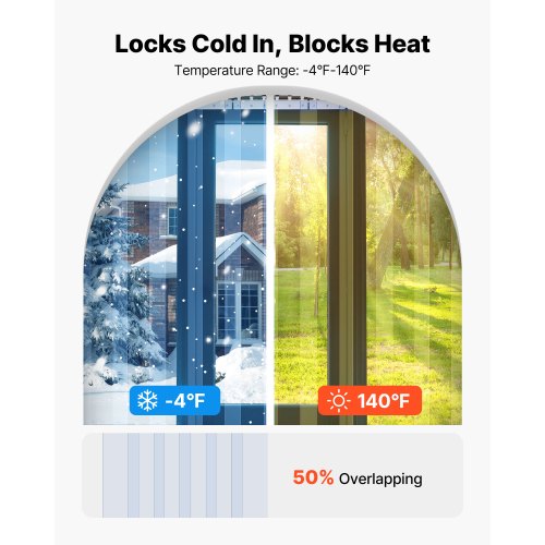 VEVOR Streifenvorhang, 243 cm Höhe x 121,9 cm Breite, 0,2 cm Dicke, 8 Stück transparenter PVC-Streifen-Türvorhang, Gefrierschrankvorhang, Kunststoff-Türstreifen für begehbare Gefrierschränke, Kühlschränke und Lagertüren, mit 50 % Überlappung