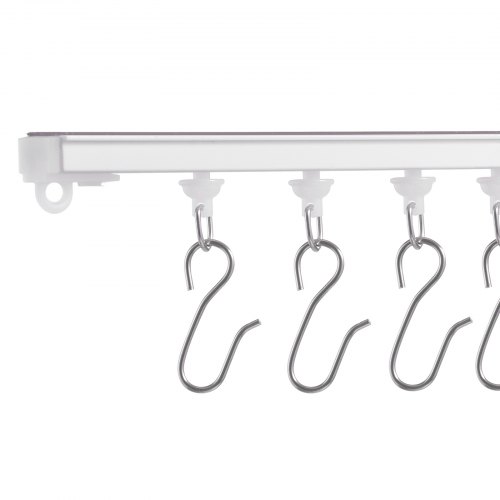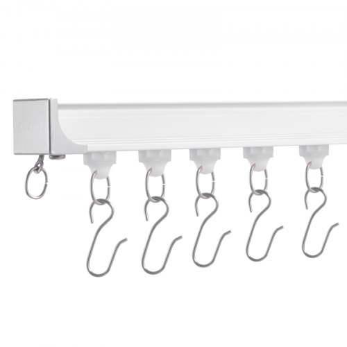 VEVOR Schiebe-Deckenvorhangschienensystem Set 1,8 m Raumteiler-Gardinenschiene Halterung zur Decken-/Wandmontage für Wohnzimmer Schlafzimmer mit Haken & Hardware & 2 Schienen, weiß 1810 x 68 x 46 mm