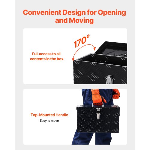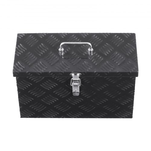 VEVOR robuster Werkzeugkasten aus Aluminium für die Ladefläche, gestreifte Werkzeugkiste (406 x 190 x 254 mm) mit seitlichem & oberem Griff, Aufbewahrungs-Organizer für Anhänger Wohnmobil Schwarz