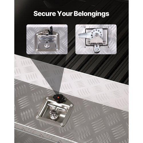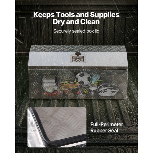 VEVOR Werkzeugkasten aus Aluminium für die Ladefläche, gestreifte Werkzeugkiste (508 x 304,8 x 241,3 mm) mit seitlichem Griff & Schlossschlüsseln, Aufbewahrungs-Organizer für Anhänger Schwarz