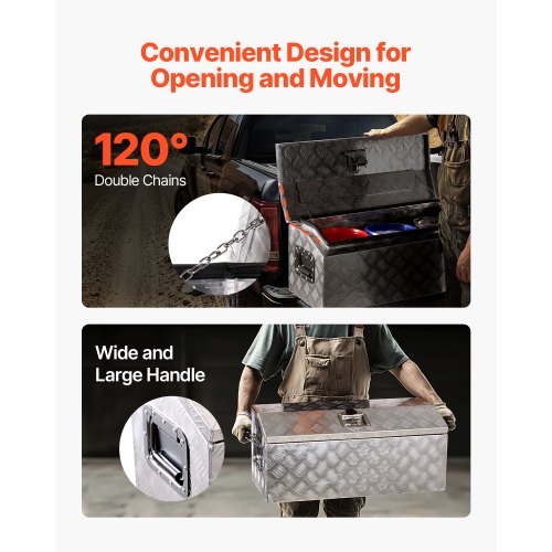 VEVOR Unterboden-Lkw-Box, 1219 x 610 x 610 mm Pickup-Aufbewahrungsbox, Aluminium-Werkzeugkasten mit Schloss & Schlüsseln, Wasserdichte Anhänger-Werkzeugkiste für Lkw, Transporter, Anhänger usw.
