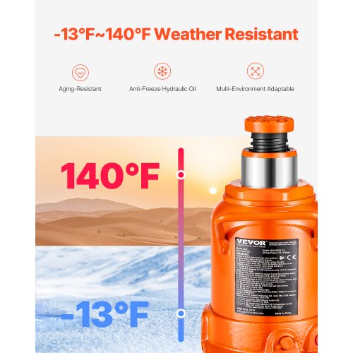VEVOR hydraulischer Wagenheber, 50 t Stempelwagenheber Flaschenwagenheber mit 28-44 cm Hubbereich und 3-teiligem langem Griff, für Auto Pickup Lkw Wohnmobil Autoreparatur Industrietechnik