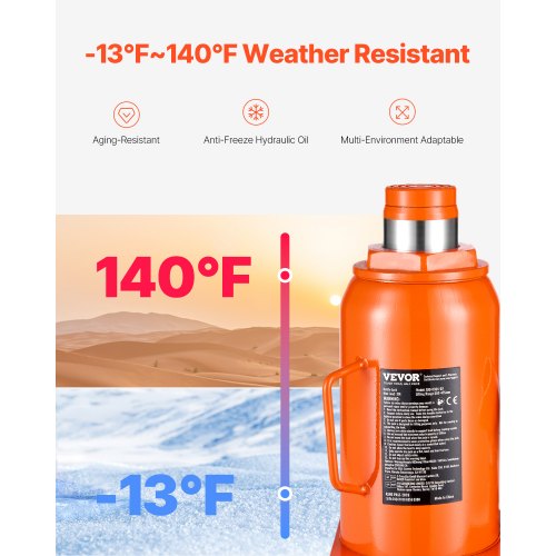 VEVOR Hydraulischer Wagenheber 20 t Stempelwagenheber Flaschenwagenheber mit 17-32 cm Hubbereich und 3-teiligem langem Griff, für Auto Pickup Lkw Wohnmobil Autoreparatur Industrietechnik