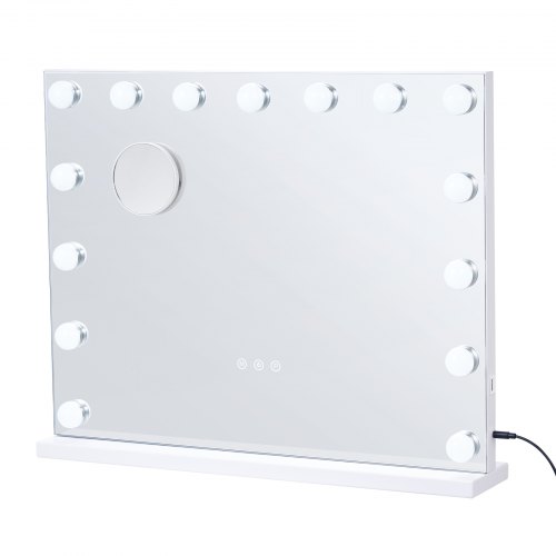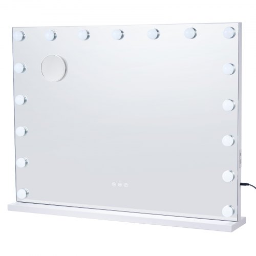 VEVOR Hollywood Schminkspiegel mit Beleuchtung, 15 dimmbare Glühbirnen & 3 Farbbeleuchtungsmodi, Kosmetikspiegel mit abnehmbarer 5-facher Vergrößerung, USB-Anschluss, Smart-Touch-Steuerung, 580x458mm