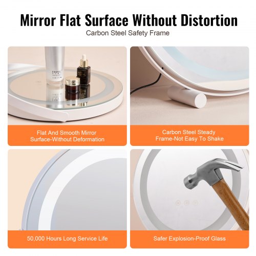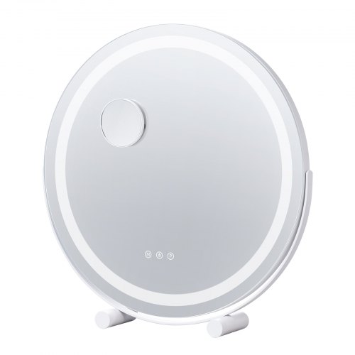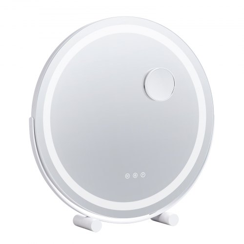VEVOR Hollywood Schminkspiegel mit Beleuchtung φ513mm, LED-Kosmetikspiegel, 3 Farbbeleuchtungsmodi, mit 5-facher Vergrößerung, Smart-Touch-Steuerung, 360°-Drehbar, für Schlafzimmertisch (weiß)