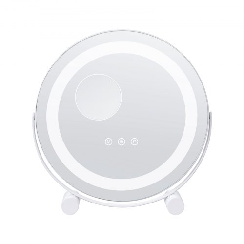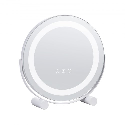 VEVOR Kosmetikspiegel mit Beleuchtung φ310mm, Kosmetikspiegel, 3 Farbbeleuchtungsmodi, mit 5-facher Vergrößerung, Smart-Touch-Steuerung, 360°-Drehung, Schminkspiegel für den Schlafzimmertisch (weiß)