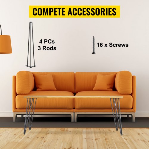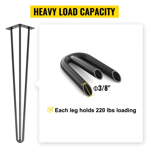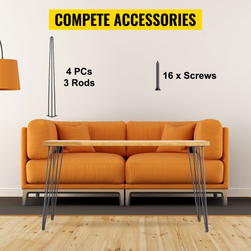 VEVOR Tischbein Tischbeine Metall Schwarz 101,6 cm 4 Stück Haarnadel Tischbeine 3 Pfosten Tischfüße Verstellbar Austauschbare Diy