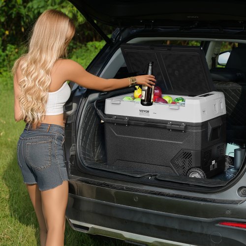 VEVOR Camping Kühlschrank 45 L Kühlboxen 12 / 24 V Rollbare Elektrische Gefrierbox 2 in 1 Doppelzone Auto Kühlschrank Kompressor zum Warmhalten und