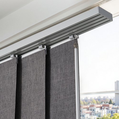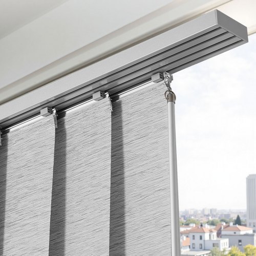 VEVOR Flächenvorhänge, ausziehbare Schiene von 116 cm bis 218 cm (B), zuschneidbare Flächenvorhänge bis 243 cm (H), einstellbare Schiebegardinen für Schiebetüren Terrassentüren Grau