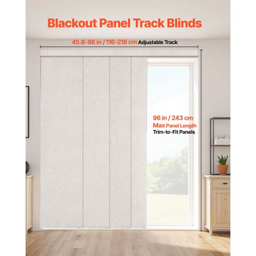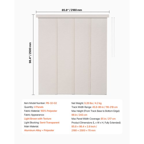 VEVOR Flächenvorhänge, ausziehbare Schiene von 116 cm bis 218 cm (B), zuschneidbare Flächenvorhänge bis 243 cm (H), einstellbare Schiebegardinen für Schiebetüren Terrassentüren Hellbraun