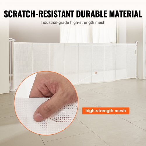 VEVOR einziehbares Babygitter 87 cm hoch, ausziehbar bis 140 cm breit, Gitter für Kinder oder Haustiere, Netzmaterial, einfach zu installieren, für Innentreppen Türen Flure Spielzimmer Weiß