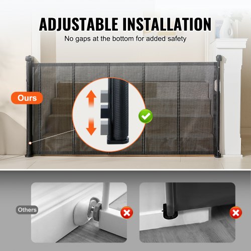 VEVOR einziehbares Babygitter 870 mm hoch, ausziehbar bis 1800 mm breit, Gitter für Kinder oder Haustiere, Netzmaterial, einfach zu installieren, für Innentreppen Türen Flure Spielzimmer Schwarz