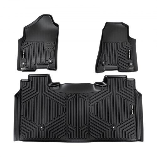 VEVOR Auto-Fußmatten passend für Dodge Ram 1500 Crew Cab 2019-2024 3-teilig, Einlagen für die vordere und zweite Reihe, wetterfeste maßgeschneiderte Autofußmatten aus TPE Schwarz