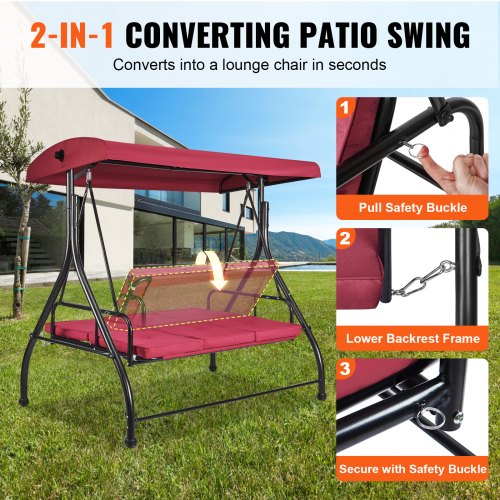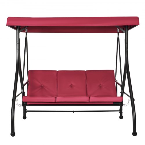 VEVOR 3-Sitzer-Terrassenschaukelstuhl, Hollywoodschaukel mit verstellbarem Baldachin, abnehmbarem, Kissen und Rahmen aus legiertem Stahl, für Balkon, Hinterhof, Poolrand, Burgunderrot