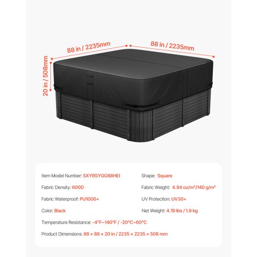 VEVOR Abdeckung für Whirlpool (1930 x 1930 x 508 mm) wetterfest & wasserdicht, Spa-Abdeckung Staubschutzabdeckung aus Oxford-Gewebe & mit 950 N Reißfestigkeit, Staubdicht für Badewannen Schwarz
