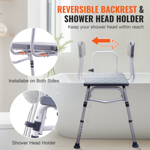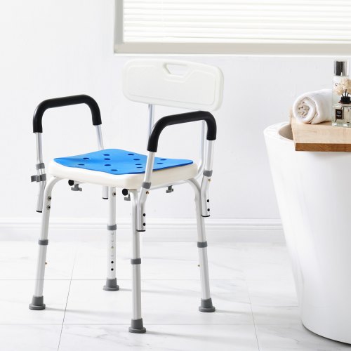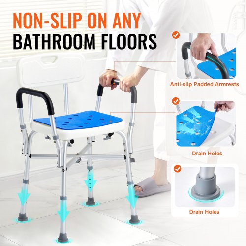 VEVOR Duschstuhl Duschsitz Tragkraft 181,4 kg, Duschhocker mit Armlehnen & Rückenlehne, Duschstuhl für Innendusche, höhenverstellbarer Badestuhl für ältere Menschen, Behinderte