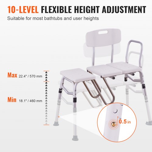 VEVOR Badewannen-Transferbank, verstellbare Badewannen-Transferbank mit U-förmigem Vorhangschutz und umkehrbarer Rückenlehne, rutschfeste Duschsitz-Badewannenbank für ältere behinderte verletzte