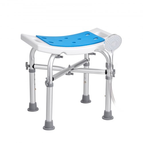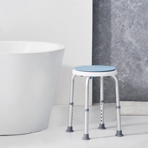 VEVOR Duschhocker Duschstuhl 360–485 mm Höhenverstellbar, Badhocker Badsitz 136,1 kg Tragfähigkeit, Stabiler Duschhocker Duschhilfe Badewannen Aluminiumlegierung-Rahmen, Duschsitz Badhocker Blau