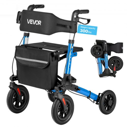 VEVOR Rollator 3-Fach Faltbar mit Sitz, Leichter Gehwagen mit 4 Reifen, Gehhilfe bis 136 kg mit Rückenlehne Tasche Gehstockhalter, Höheverstellbare Laufhilfe mit Feststellfunktion für Senioren, Blau