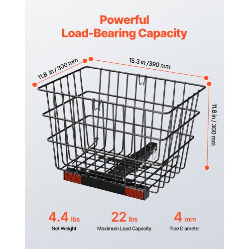 VEVOR Elektromobil Hinterkorb, 39x30x30 cm, Gepäckkorb Seniorenmobil, funktioniert mit 2,54 cm Empfänger, faltbarer Metalldrahtkorb, kompatibel mit den meisten Mobilitätsrollern Mobilitätshilfe