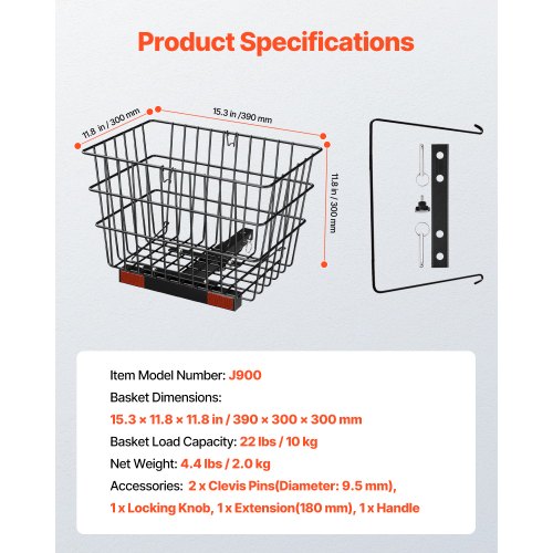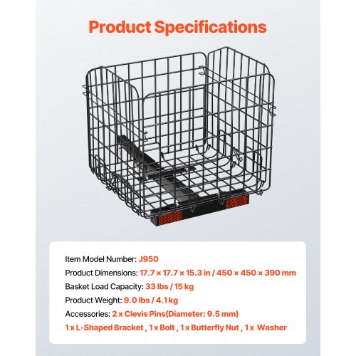 VEVOR Elektromobil Hinterkorb, Heckkorb, robuster & geräumiger Gepäckkorb Seniorenmobil, funktioniert mit 2,54 cm Empfänger, kompatibel mit den meisten Mobilitätsrollern, Mobilitätshilfe 45x45x39 cm