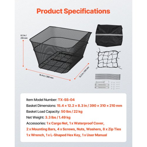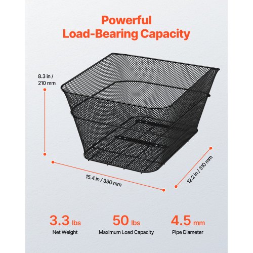 VEVOR Fahrradkorb Hinten 39x31x21 cm, Drahtgeflecht-Hinterradkorb mit Gepäcknetz & Abdeckung, Gepäckträgerkorb, passt auf die meisten Fahrradgepäckträger, Montagewerkzeug im Lieferumfang enthalten