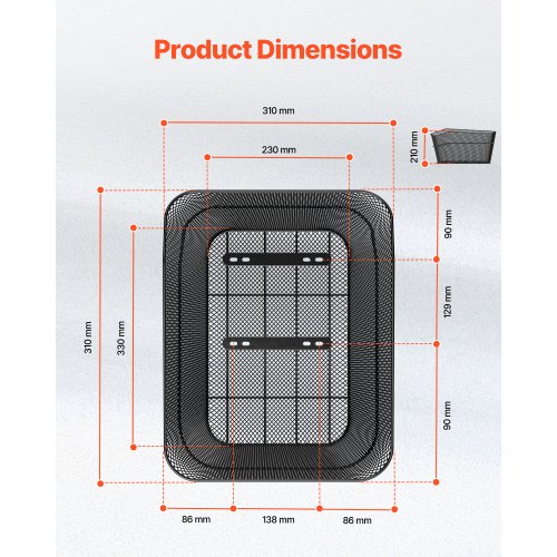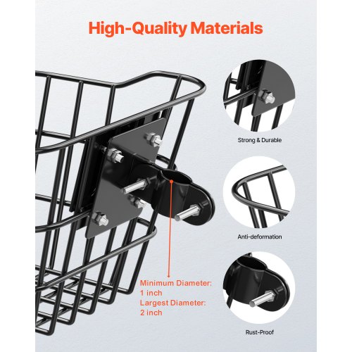 VEVOR Vorderradkorb 245x215x180 mm, Scooter-Korb mit fester Halterung, max. Tragkraft 9 kg, Lenkerkorb aus massivem Stahl, Kinderfahrradkorb/Erwachsenenfahrradkorb/Knie-Elektroroller-Zubehör
