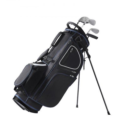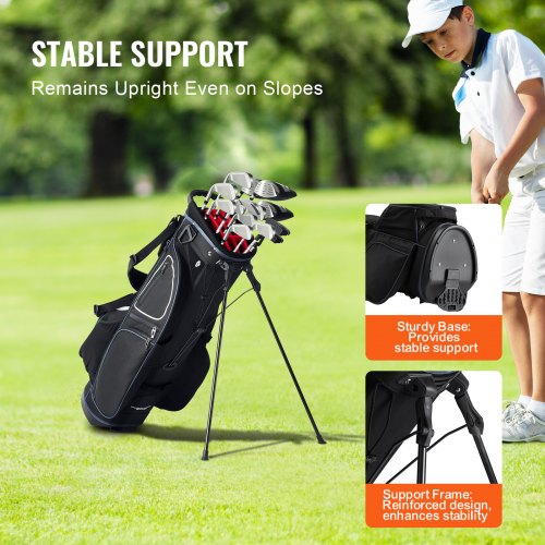 VEVOR Golf-Cart-Tasche mit 14-Wege-Organizer-Unterteilung oben, 35 Zoll, 11 Taschen, Premium-Cart-Tasche mit Ständer, langlebige Golftaschen mit Griffen und Staubschutzhülle und abnehmbarem Doppelgurt für Männer und Frauen, Schwarz-Weiß
