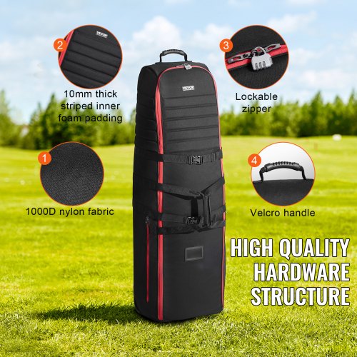 VEVOR Golf-Reisetasche Golftasche, tragbare Golf-Reisehülle Golftasche, verschleißfeste, wasserdichte, gepolsterte Tasche aus 1000D-Nylon, Aufbewahrungstasche für Golfschläger für Fluglinien Schwarz