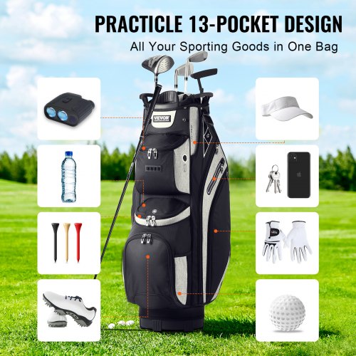 VEVOR Golf-Cart-Tasche mit 14-Wege-Organizer-Unterteilung oben, 41 Zoll, 13 Taschen, Premium-Nylon-Cart-Tasche, langlebige Golftaschen mit Griffen, Staubschutzhülle und abnehmbaren Riemen für Männer und Frauen, schwarzes Farbblockdesign