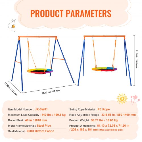 VEVOR Schaukel-Sets für den Garten, 200 kg Tragkraft, Schaukel-Set, 101,6 cm Tellerschaukelsitz mit robustem A-Rahmen-Schaukelständer aus Metall und verstellbarem Seil, einfach zu montieren, Schaukel-Set für den Außenbereich für Kinder