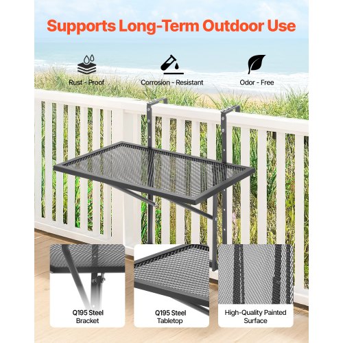 VEVOR Balkontisch, 61x41 cm, klappbarer Balkonhängetisch aus Metall, Klapptisch für Geländer im Freien, 5-stufig verstellbar, passend für Geländer von 1 bis 4,7 Zoll, Serviertisch für Terrasse & Deck