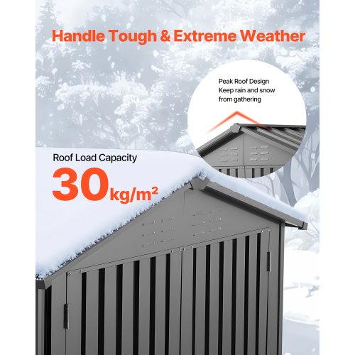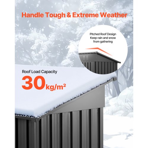 VEVOR Metall Gerätehaus, Geräteschuppen mit abschließbaren Türen & 4 Lamellenlüftungen, Gartenhaus mit Spitzdach, Lagerschuppen für Hinterhof, Garten, Terrasse, Fahrrad, 1860x1210x1841 mm