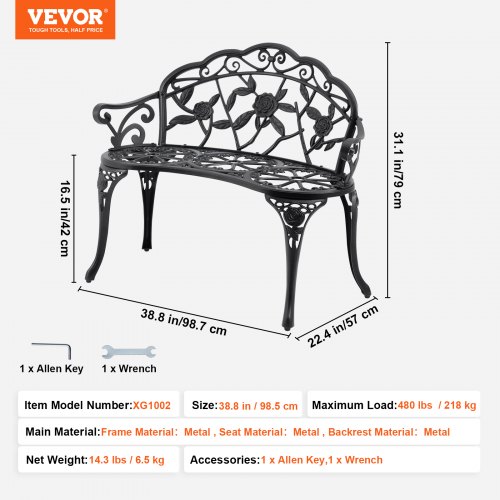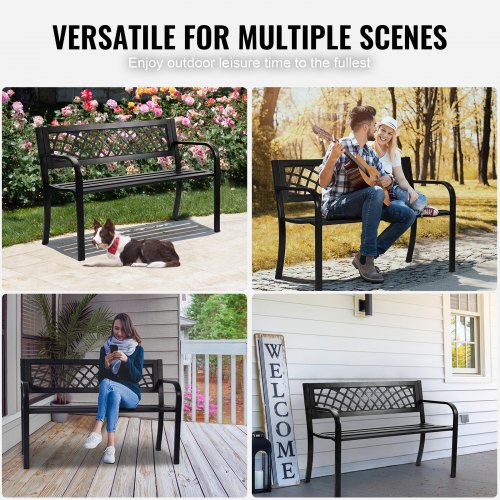 VEVOR Gartenbank Terrassenbank aus Metall, 987 mm Parkbank Ruhebank 2118 kg Tragkraft, 3 Personen Garten- und Parkbank mit Rückenlehne & Armlehnen, Vintage Sitzbank für Garten, Park, Hof, Veranda