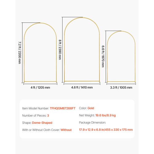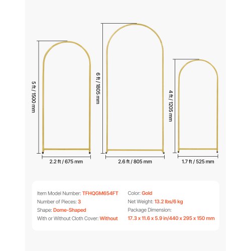 VEVOR Hochzeit Bogen, 3er-Set, Traubogen mit Gehäuseverbindung und Chassis-Querstangendesign, leicht zu montierender Ständer mit hochwertigem Metall, passend für Geburtstage, Feiern, Feiertage